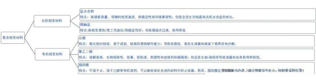 在了解复合相变材料之前,先了解下相变材料PCM。PCM可以利用潜热在相变过程中吸收大量的热量而不发生变化,可以实现对锂离子电池的冷却和温度控制。PCM的选择通常要考虑相变温度。由于锂离子电池的正常工作温度范围为20-50℃,因此适用于锂离子电池热管理系统的相变材料为无极相变材料和有机相变材料,主要包括盐水合物、石蜡、脂肪酸、聚乙二醇(PEG)等。
