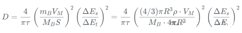 如果我们能够测试单个颗粒,假设是球形颗粒,并且锂扩散是径向的。那么: