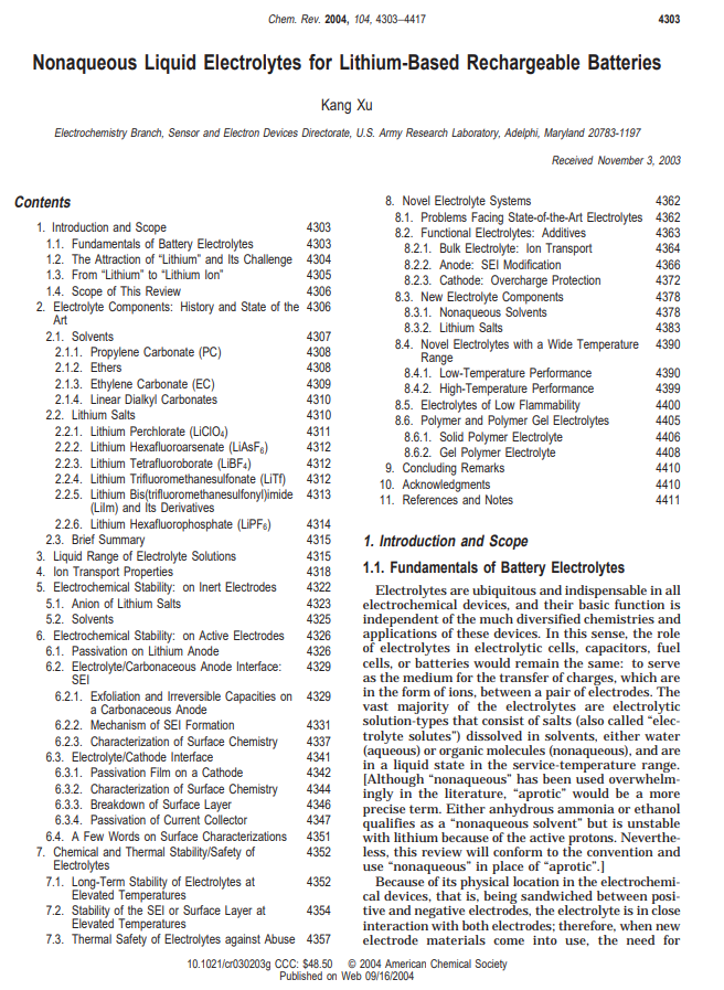 Nonaqueous Liquid Electrolytes for Lithium-Based Rechargeable Batteries