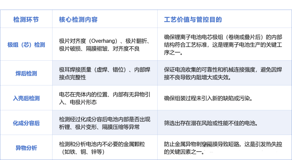 其他应用:还包括检查极耳焊接质量、电芯入壳后的位置以及化成分容后是否有析锂等现象。