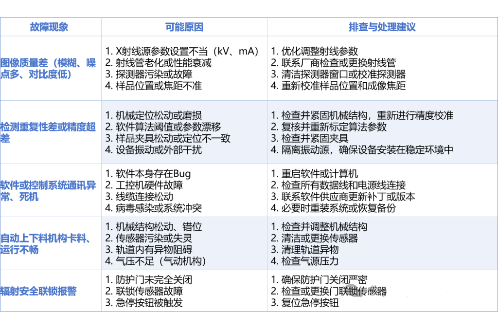 即使先进的设备也会遇到问题,以下是X-Ray设备一些常见故障及其处理思路: