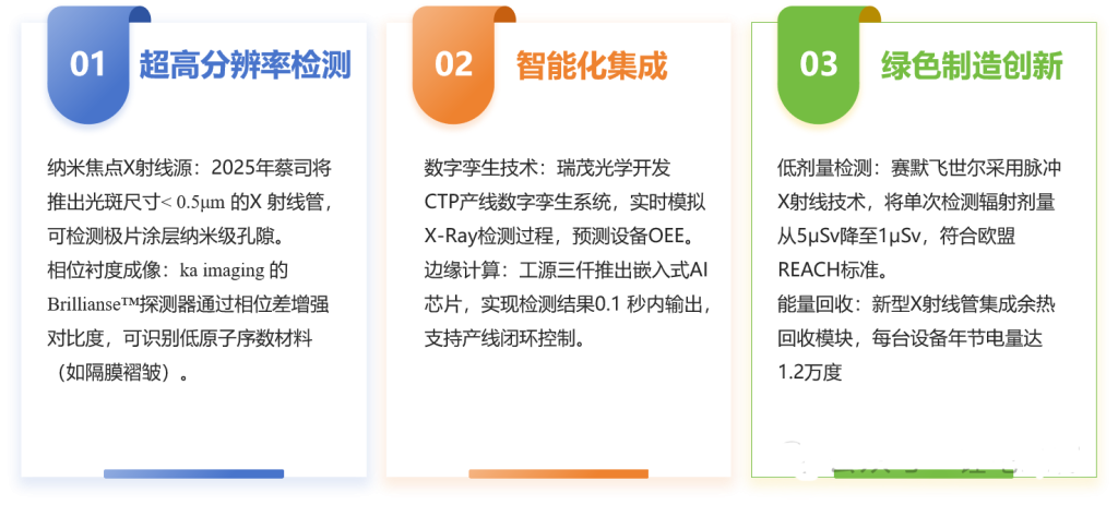 锂离子电池X-Ray检测设备正从单一功能向全流程智能管控演进。2D设备凭借低成本优势仍占据中端市场,而3D CT系统因高精度、全三维检测能力成为高端产线标配。未来,随着纳米焦点技术、相位衬度成像及数字孪生系统的普及,X-Ray检测将成为实现锂电池 “零缺陷” 制造的核心技术支撑,推动行业向更高安全性、更长寿命方向发展。
